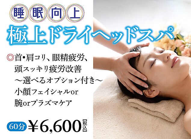 60分¥6,600(税込)…選べオプション付き(小顔フェイシャル・両腕ほぐし・頭髪プラズマケア)